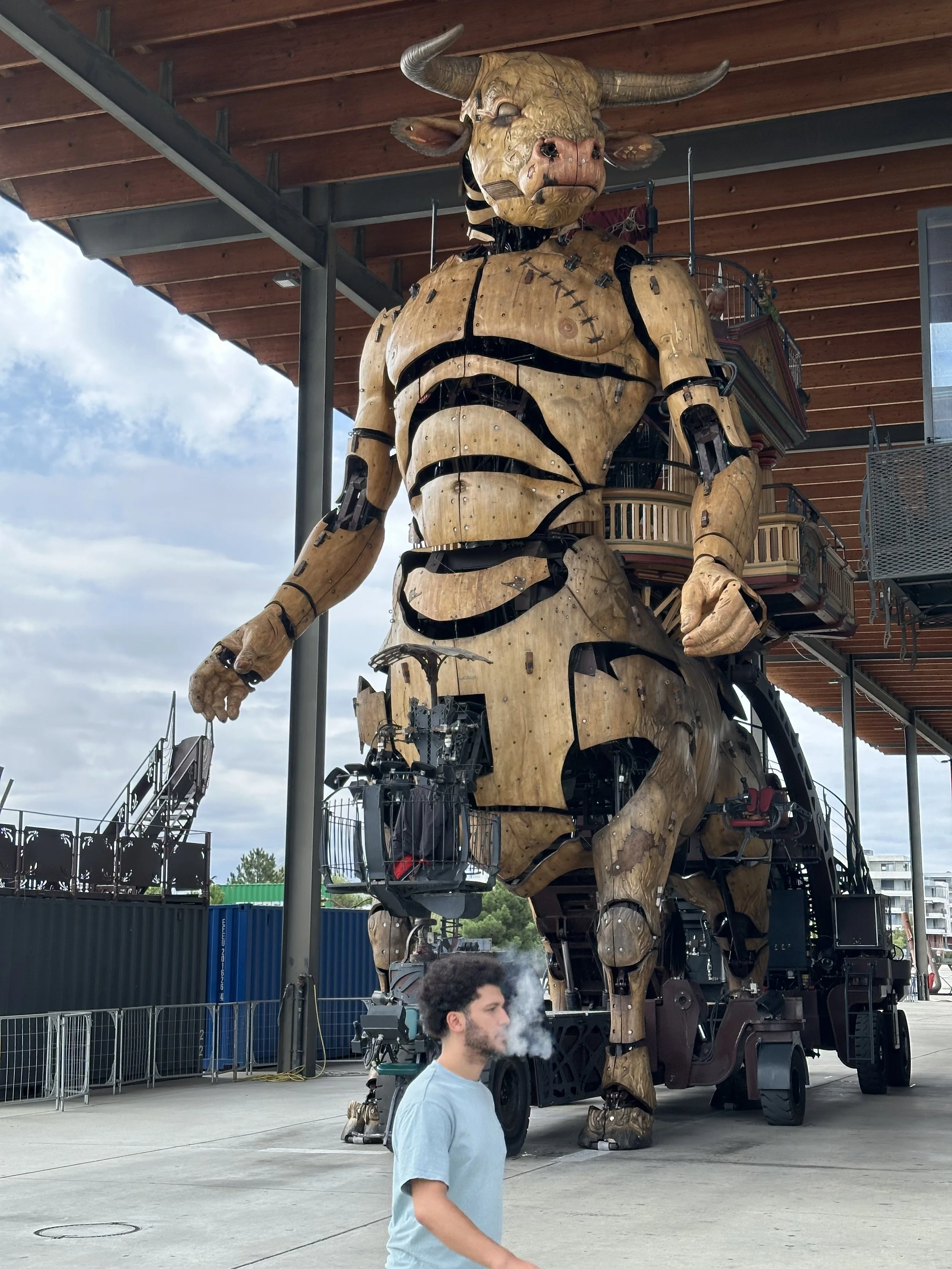 La Machine is a street theater group that has been around for almost 30 years, making huge theater pieces in urban spaces. These often involve enormous mechanical characters, such as their famous minotaur. If you visit Halle de La Machine, you can even ride on the back of the minotaur as it walks through the streets of Toulouse, amusing the patrons of nearby cafes. It is a truly surreal experience.